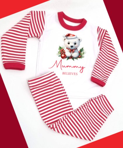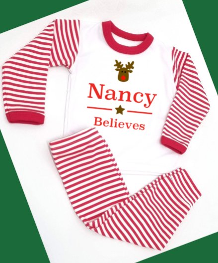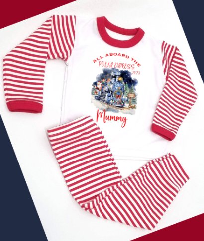 Polar Express design Personalised Red Stripe Pyjamas