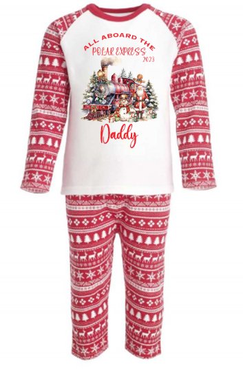 Polar Express 1 Personalised Adults Red Christmas print Pyjamas