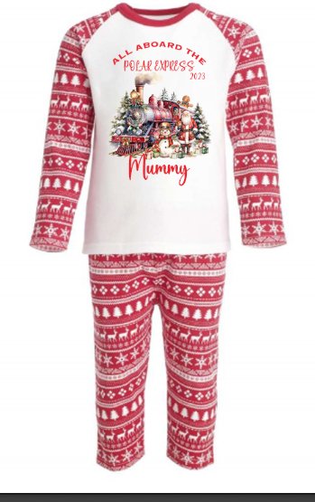 Polar Express 1 Personalised Red Christmas Print Pyjamas