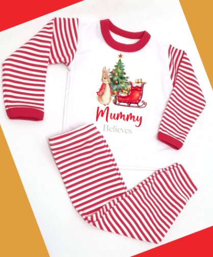 Red Rabbit & Sleigh Personalised Red Stripe Pyjamas