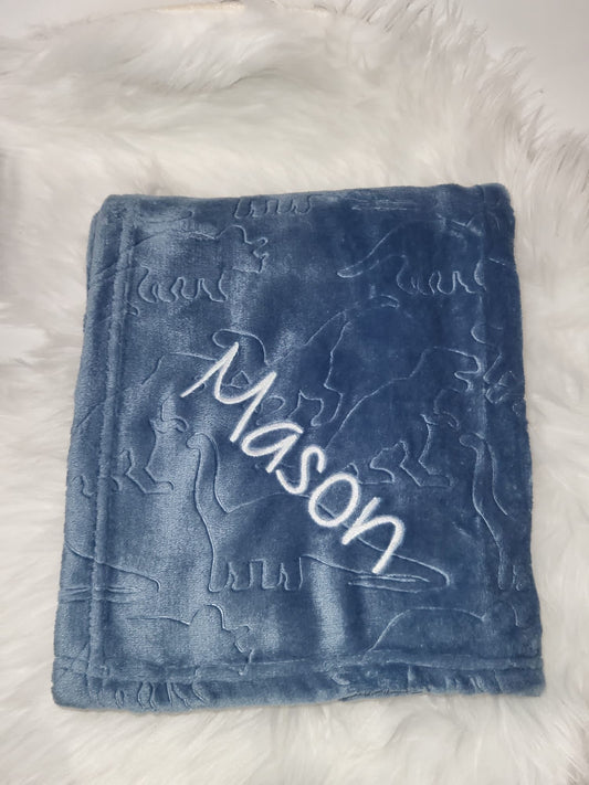 Dino embossed Dusky blue personalised baby blanket / wrap