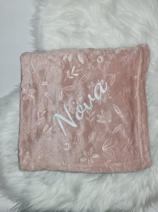 Flower embossed Dusky pink personalised baby blanket / wrap