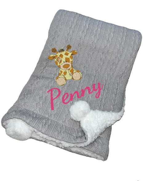 The Kenton baby Blanket Giraffe Design & Name - Various Colours
