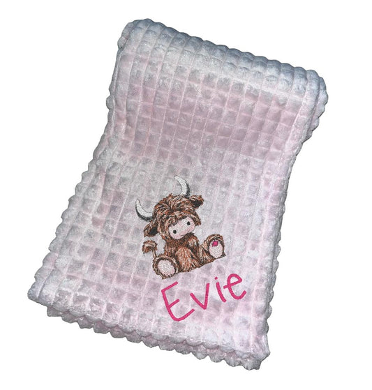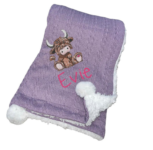 The Kenton baby Blanket Highland Cow Design & Name - Various Colours