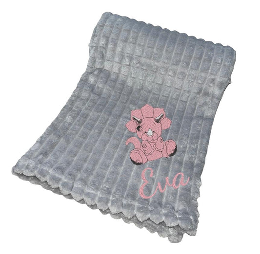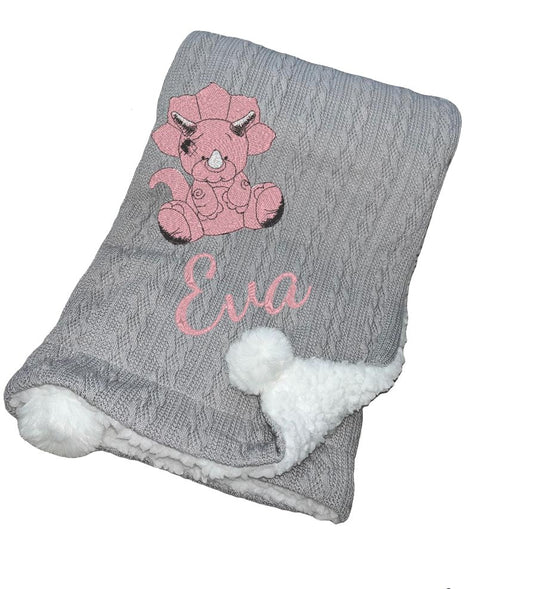 The Kenton baby Blanket Pink Dinosaur Design & Name - Various Colours