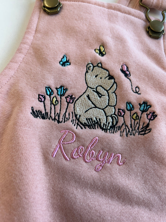 Winnie The Pooh embroidered Personalised Kids Dungaree Dress