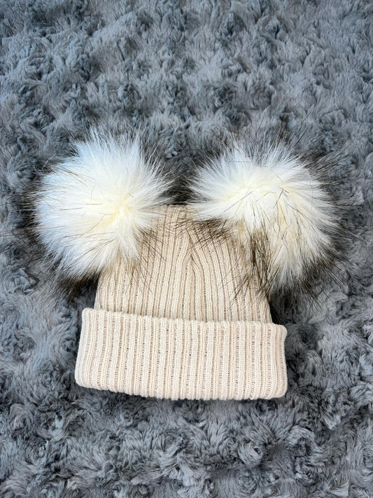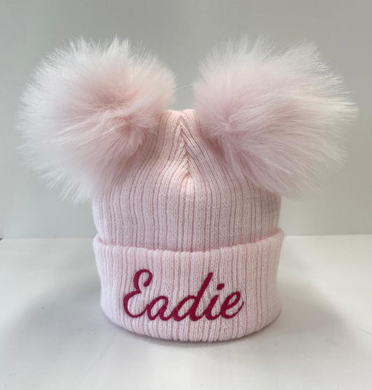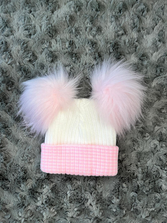 Pink 3+ Month Double Pom hat - Pink Bunny