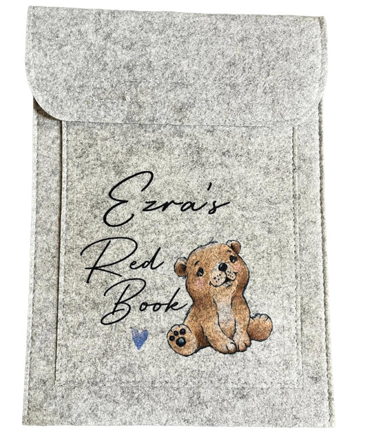 Personalised Child Health Record folder - Blue Rainbow & Teddy