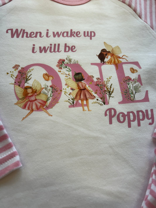 Fairy's When I Wake Up Personalised pink stripe Birthday Pyjamas Pjs