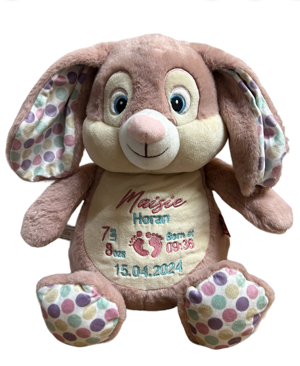 Dusky Pink Bunny Polka Dot Personalised Teddy