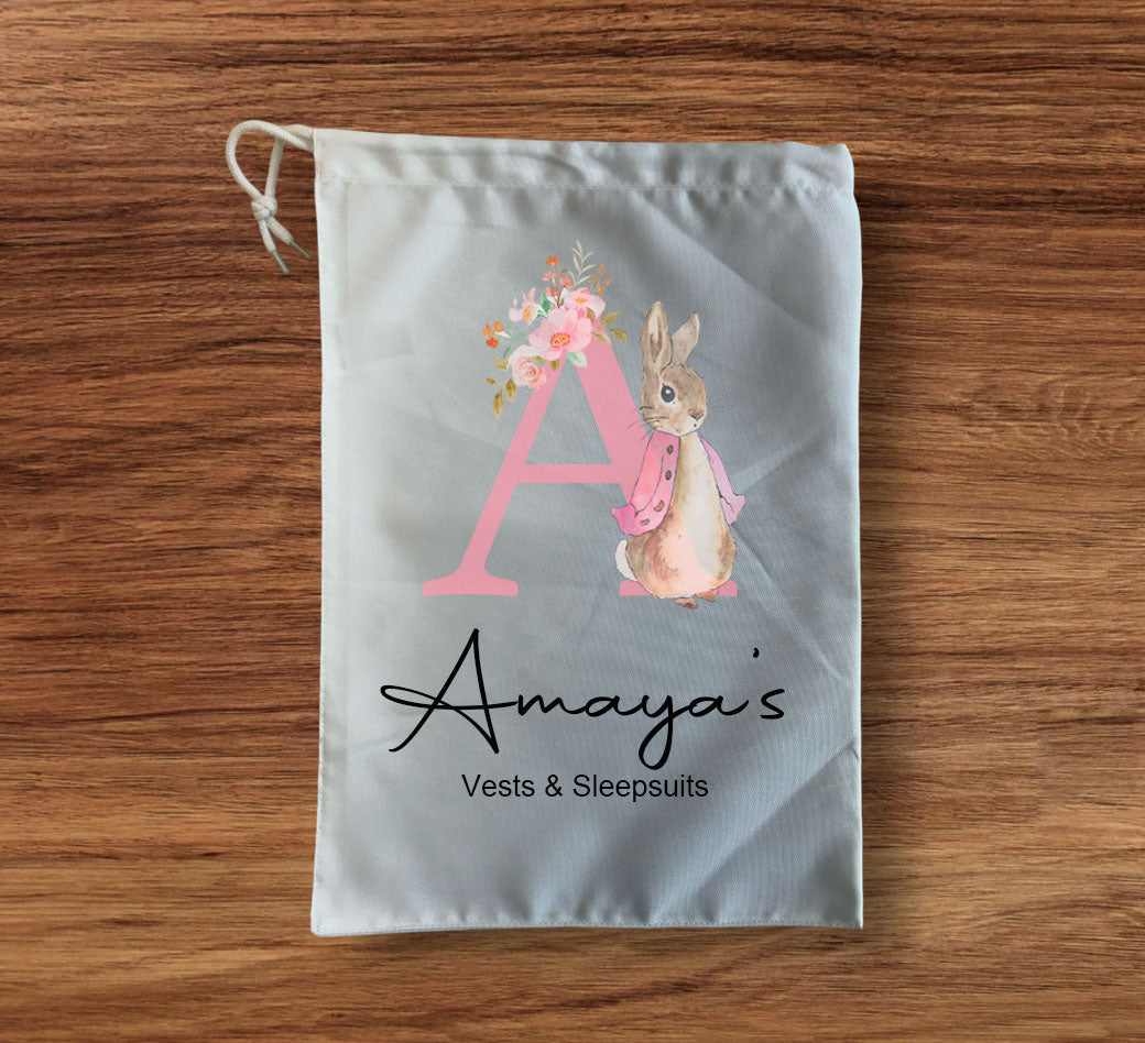 Introducing our versatile and personalised Fabric Drawstring Bag, measuring a convenient 11 x 15 inches, designed to cater to the various needs of busy parents. Crafted with care and attention to detail, this multi-functional bag is a must-have accessory for your baby's essentials.