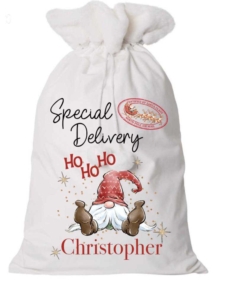 Measuring approx. 50x70cm these sacks are great for gift giving with your choice of name & printed design to the front for that something extra special