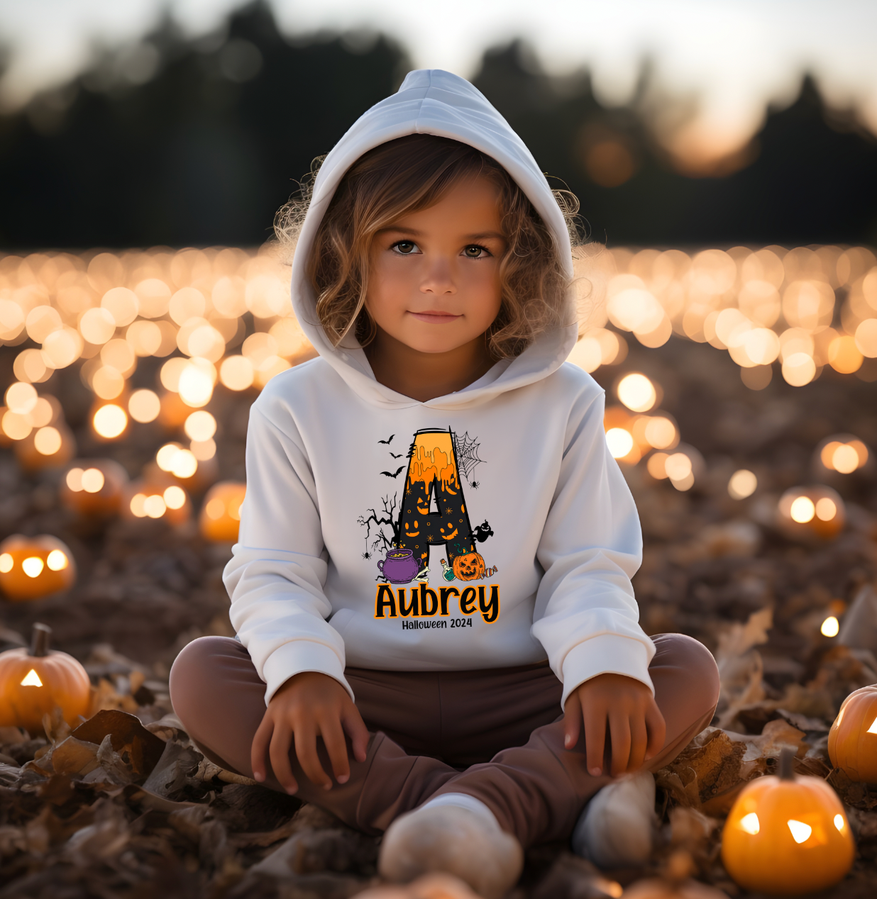 Halloween kids personalised sweater / hoodie with Spooky Initial