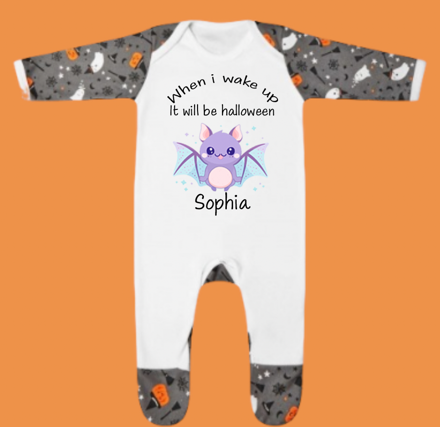 Our Personalised Pumpkin Sleepsuit is gorgeously soft to keep baby snuggly as the days get cooler.