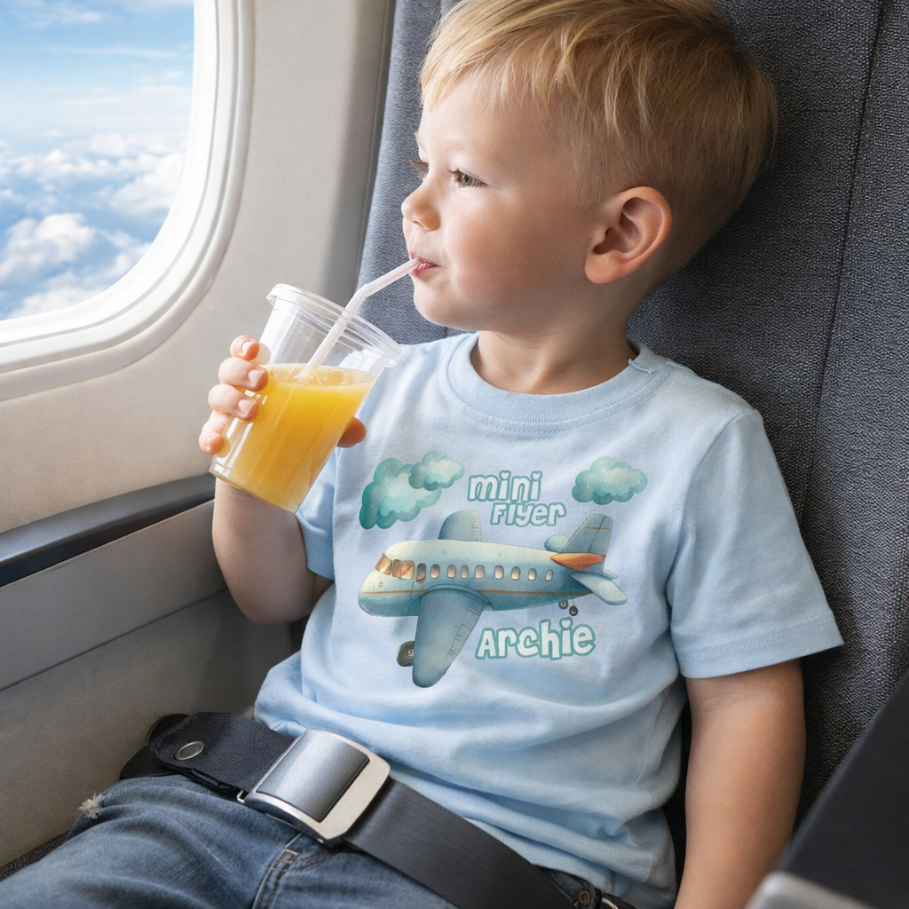 Prepare your little one for their skyward journey in style with our "Mini Flyer" Kids' personalised T-Shirt. Order now and let the adventure begin!