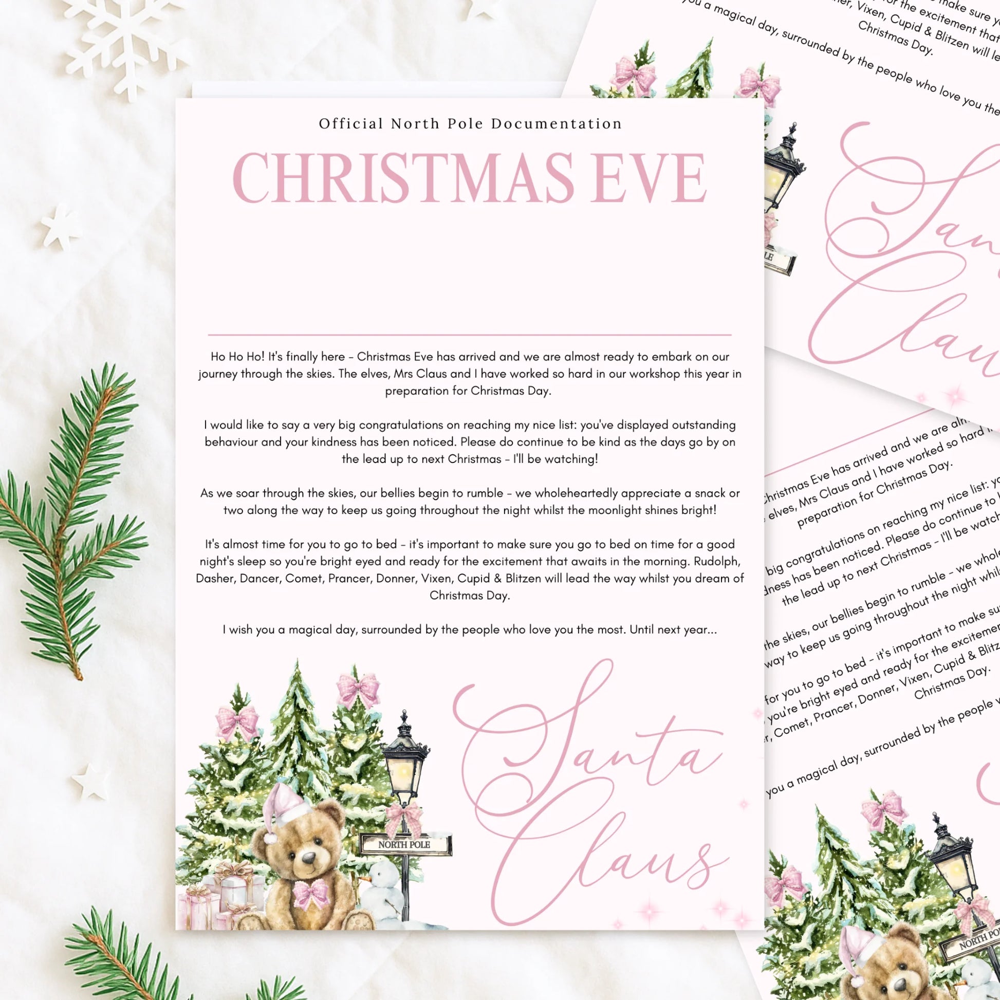 Official Nice List personalised kids Christmas Santa letter Pink