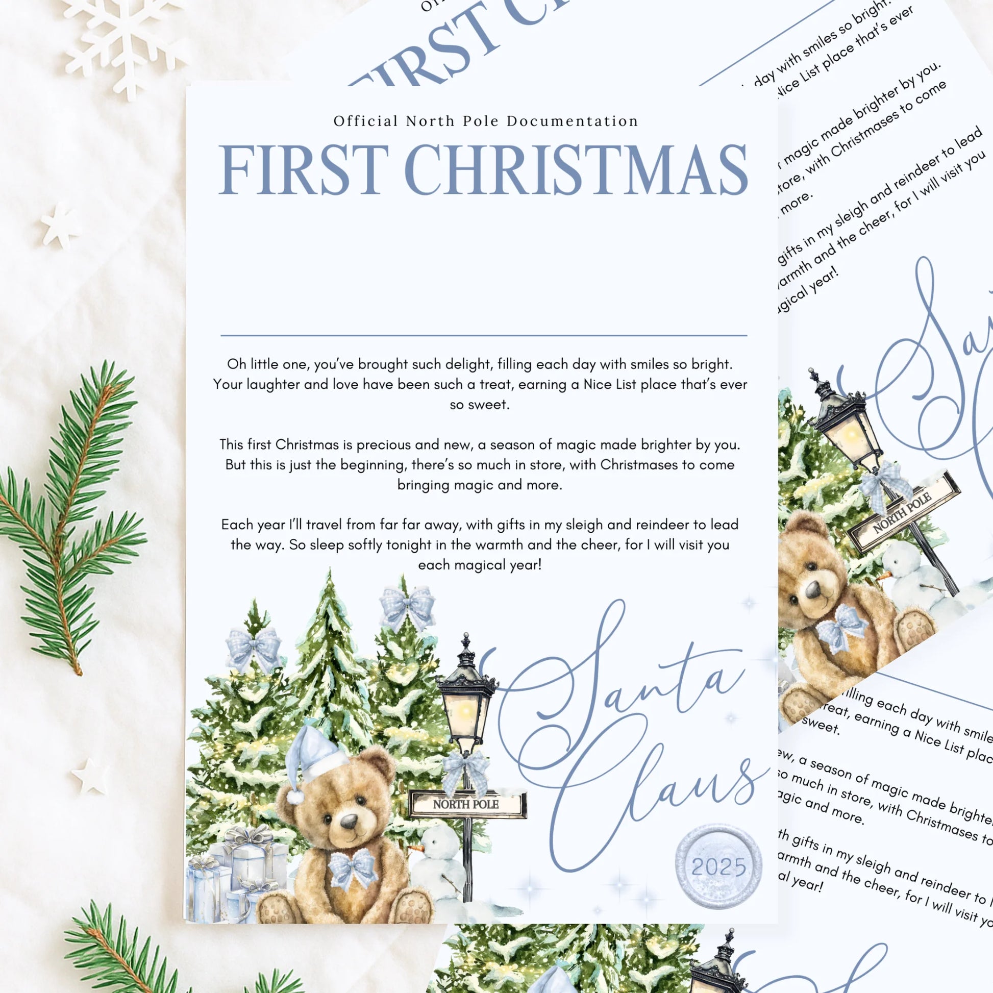 Official Nice List personalised kids First Christmas Santa letter Blue