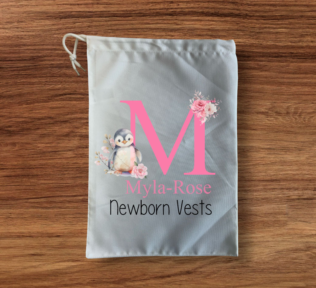 Introducing our versatile and personalised Fabric Drawstring Bag, measuring a convenient 11 x 15 inches, designed to cater to the various needs of busy parents. Crafted with care and attention to detail, this multi-functional bag is a must-have accessory for your baby's essentials.