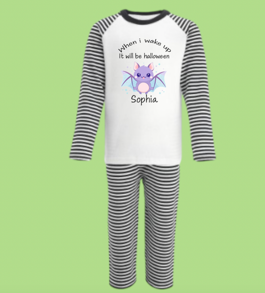 Personalised Halloween Pyjamas Cute Bat Design