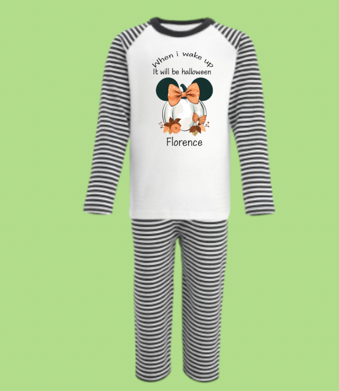 Introducing our Personalised Black Stripe Print Pyjamas with a Spooktacular Halloween Twist!