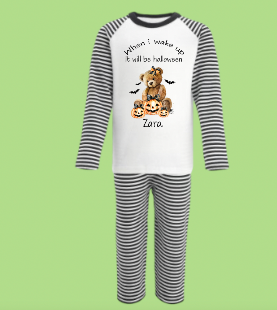 Introducing our Personalised Black Stripe Print Pyjamas with a Spooktacular Halloween Twist!