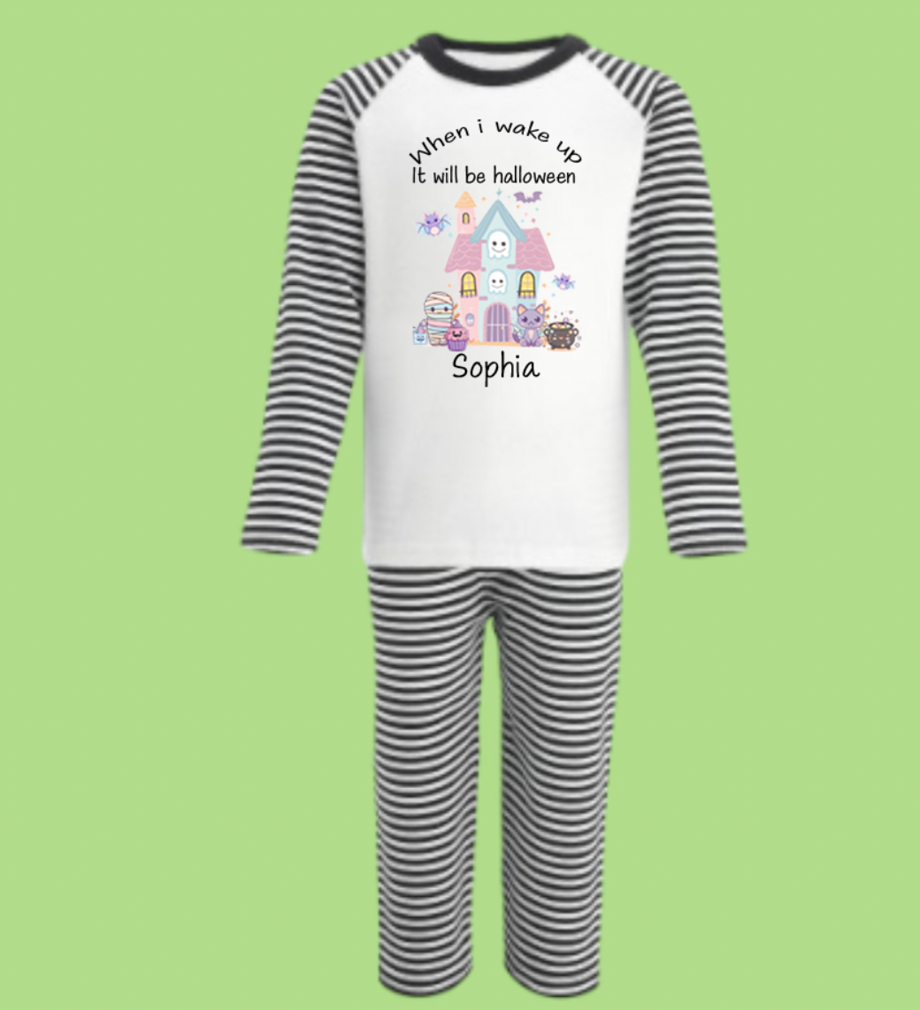 Introducing our Personalised Black Stripe Print Pyjamas with a Spooktacular Halloween Twist!