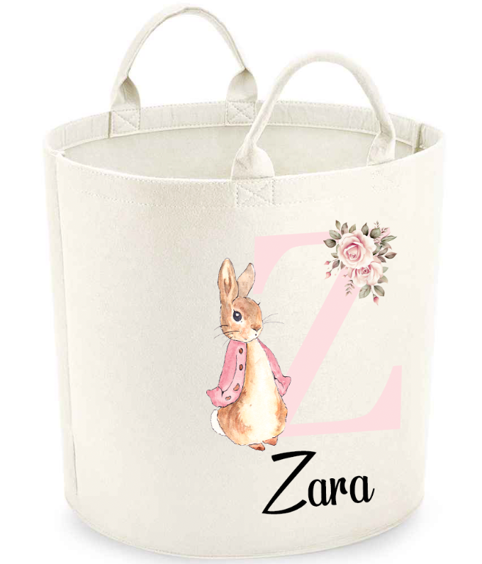 Pink Rabbit/ Initial Personalised Toy/Laundry Basket