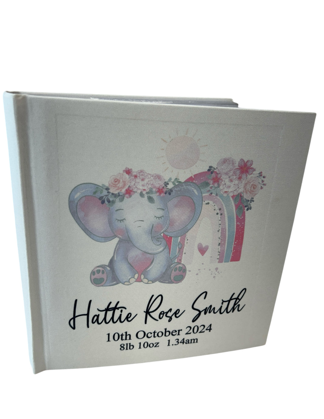 Pink Elephant design personalised baby photo album