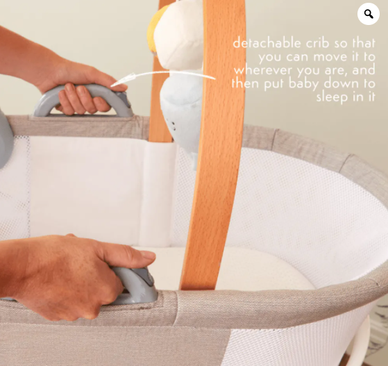 - Detachable crib so that you can move it to wherever you are, and then put baby down to sleep in it